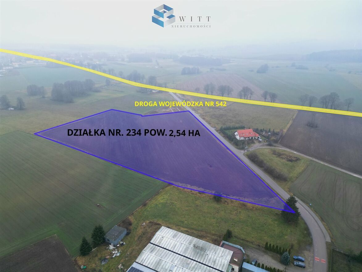 - 50 m od zjazdu z drogi wojewódzkiej nr 542, co zapewnia bardzo dobry dojazd i widoczność.